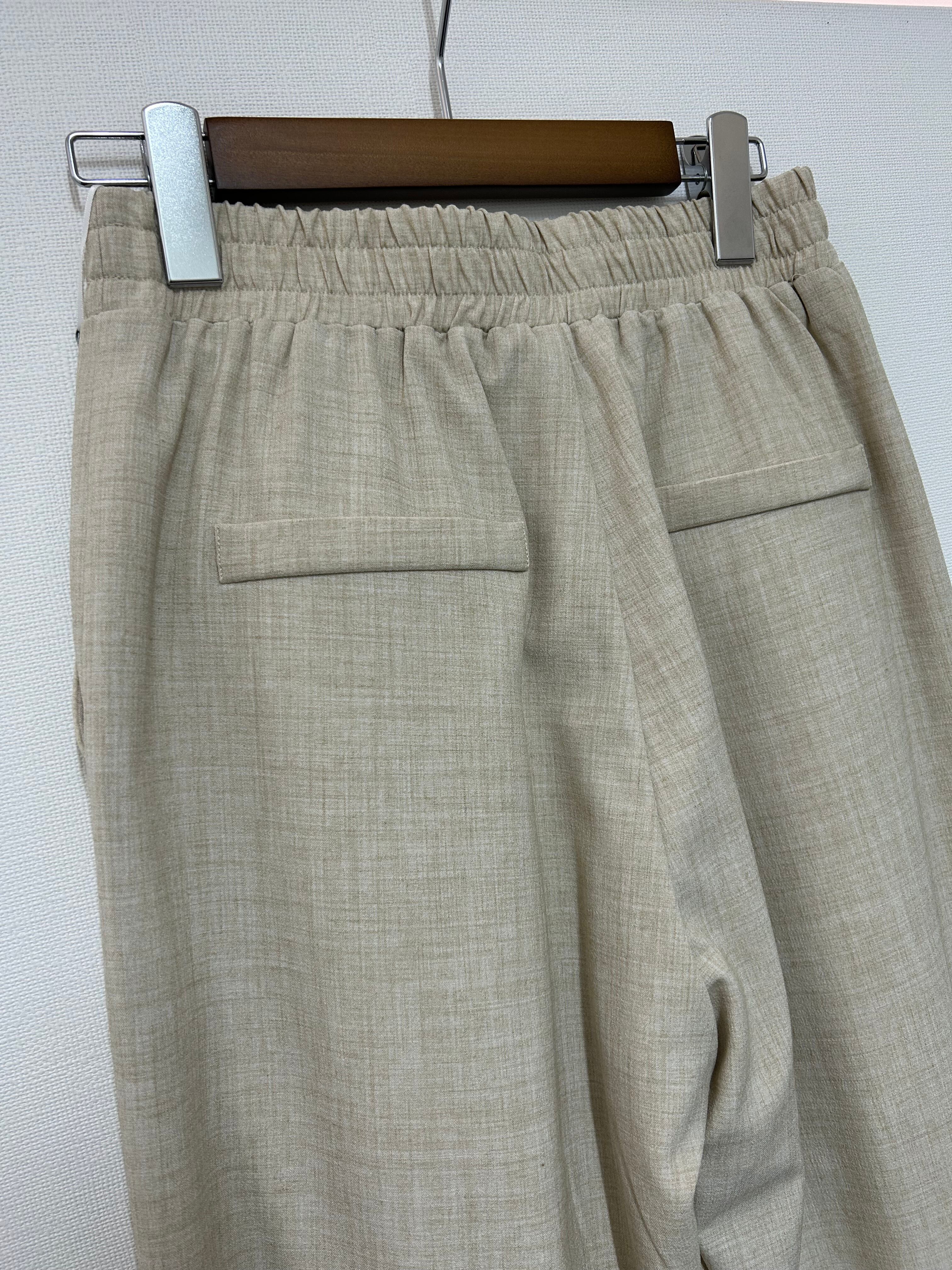 きれいめながら、リラックス感のあるデザインが特徴で、特にウエストがゴム仕様のイージーパンツは、履き心地の良さとシルエットの美しさもあります。